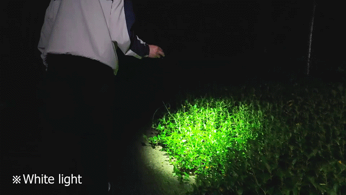 The white light has 4 brightness levels plus strobe, reaching up to 1500 lumens. Switch to ECO mode (20 lm) for longer, energy-efficient use.