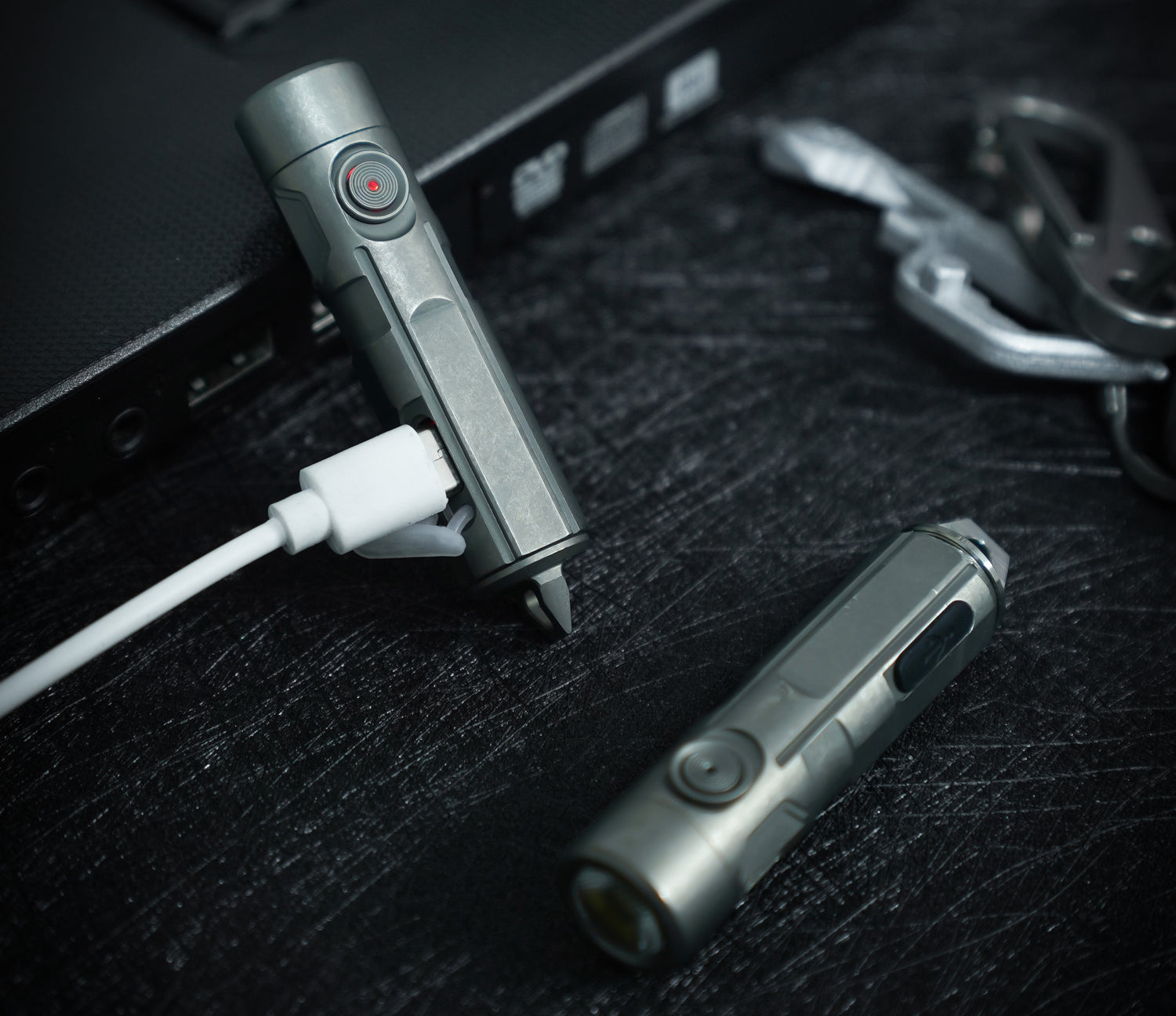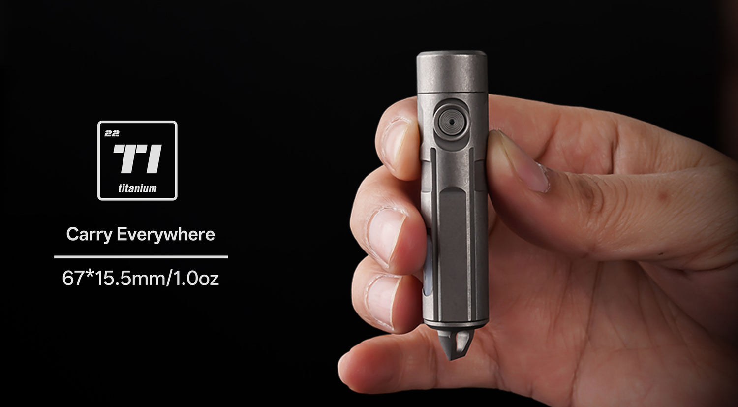 The titanium mini flashlight MINI01 features white, red, and UV lights. Its precision CNC unibody design provides excellent waterproofing, corrosion resistance, and heat resistance. The tail screwdriver design adds even more versatility.