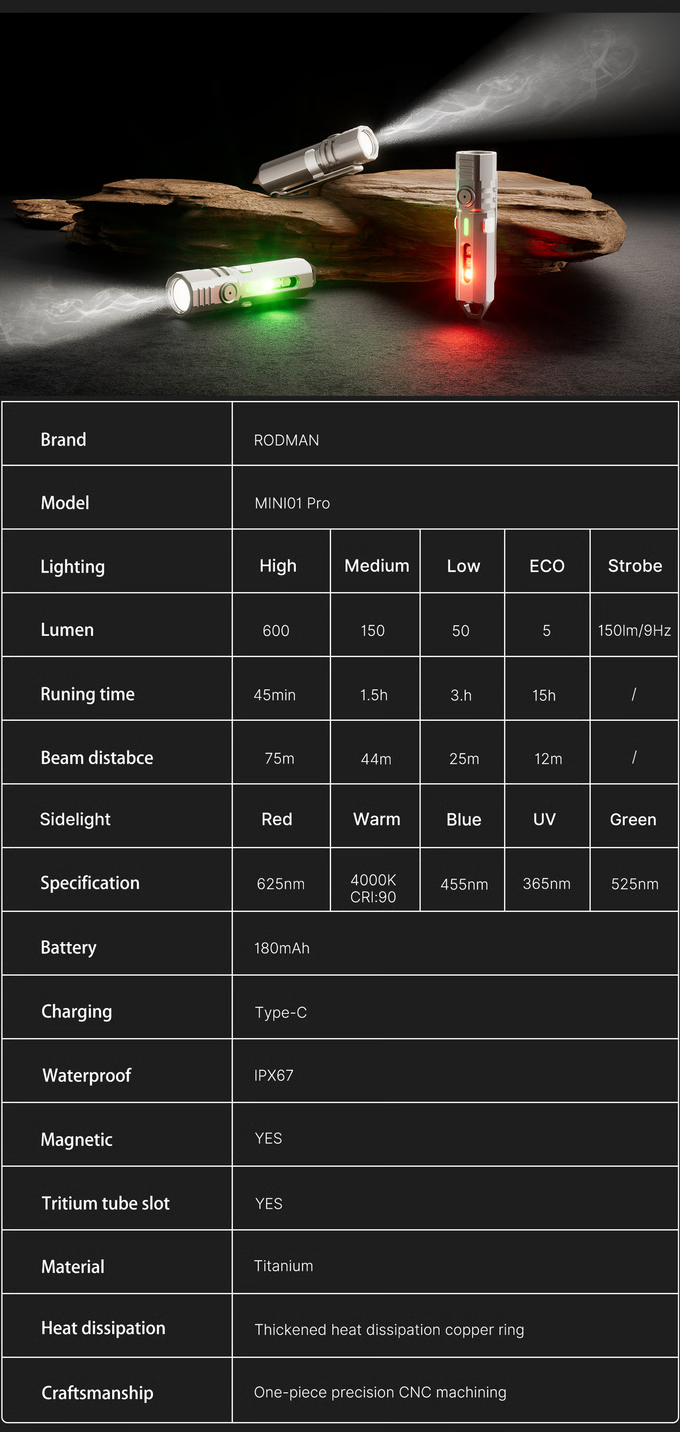 The Mini01 Pro is crafted entirely from Grade 5 titanium, combining exceptional durability with lightweight design. It can handle even the most demanding conditions, including: